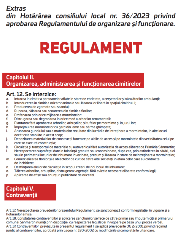 Extras din Hotărârea consiliului local nr. 36/2023 privind aprobarea Regulamentului de organizare și funcționare.